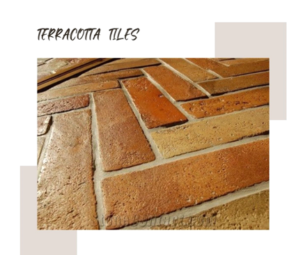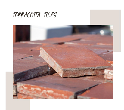 Terracotta tiles are made of natural clay, giving them a warm, reddish-brown hue that varies subtly depending on the mineral content of the clay and the firing process. The tiles are typically left unglazed, preserving the natural, porous surface that contributes to their distinct aesthetic. Terracotta is a highly durable material.